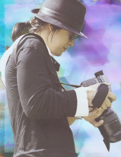 袖口は・・折っているのかな? 意外に?体ががっしりしているヨンジュンさん。